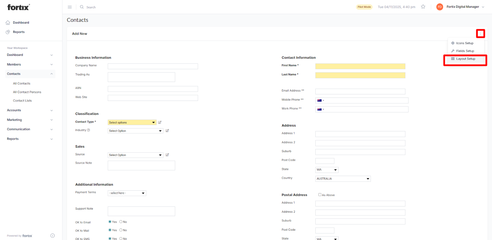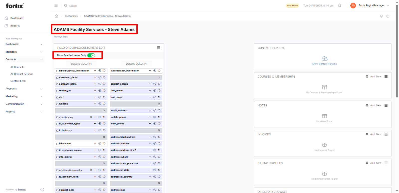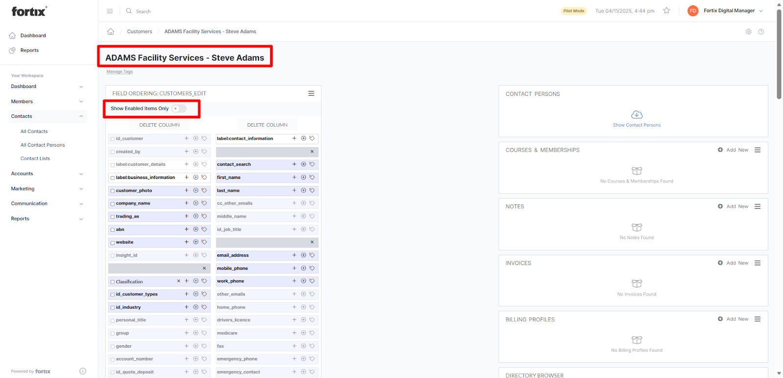 “Show Enabled Items Only” Toggle in Layout Setup | Copyright © 2024 Fortix® | 1300 426 311 Page of |
