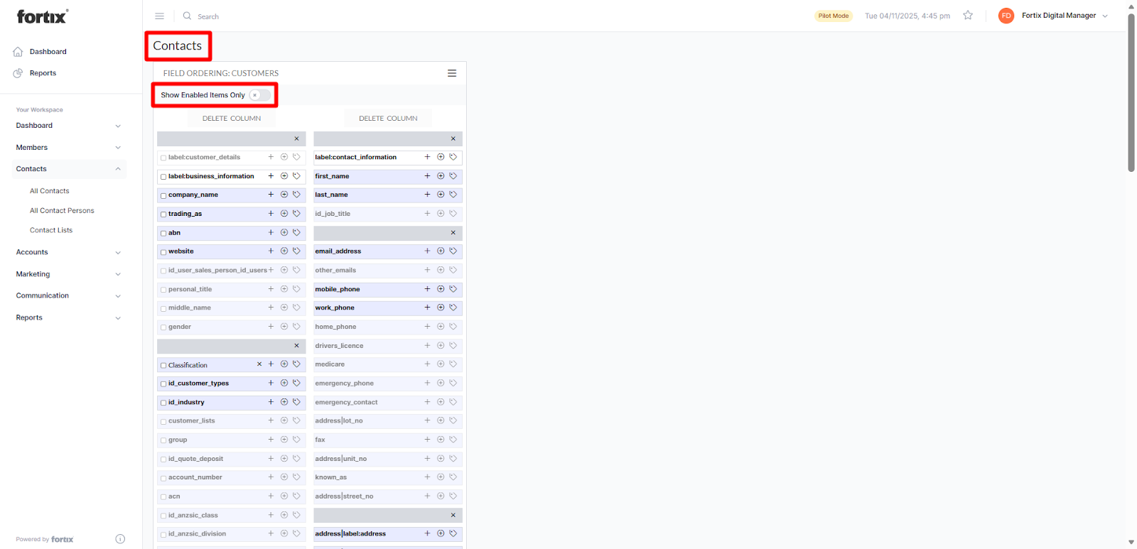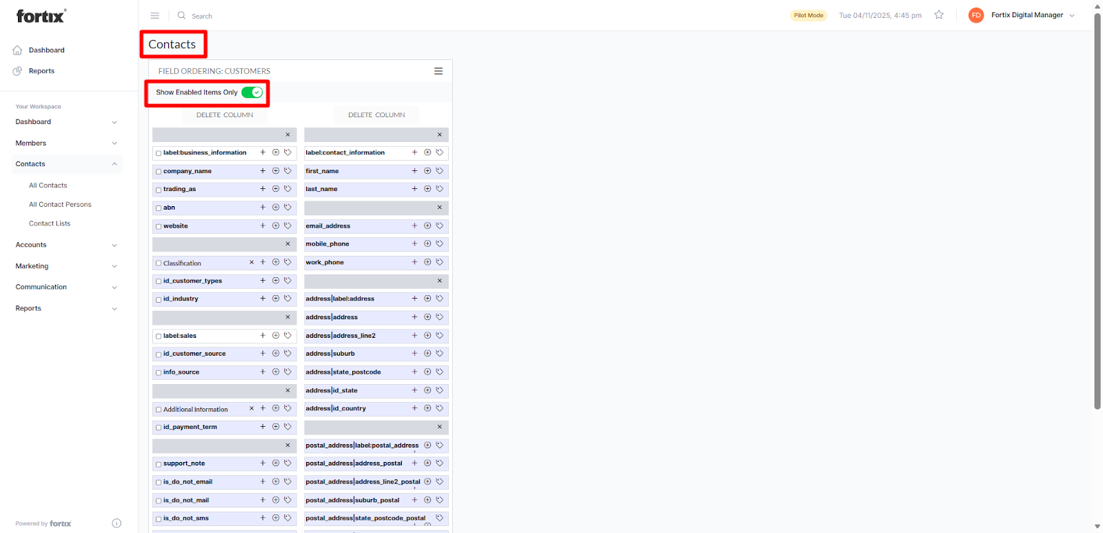 A new “Show Enabled Items Only” toggle is now available on the Layout Setup page. This handy feature allows you to quickly hide all disabled fields with just one click — keeping only the active fields, labels, spacers, and empty items visible.