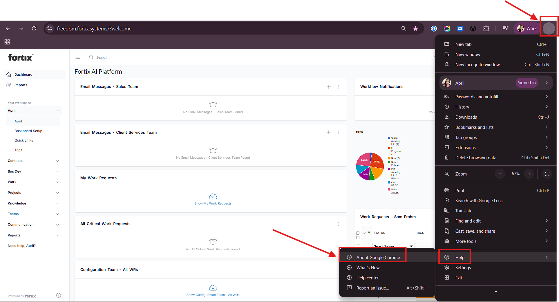 - Go to Help → About Google Chrome.