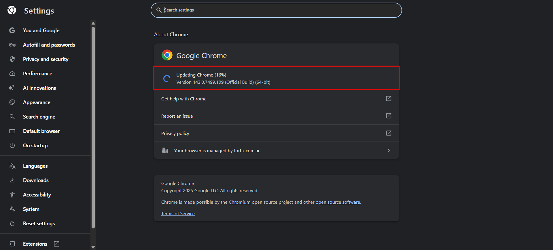 - Chrome will check for updates automatically.